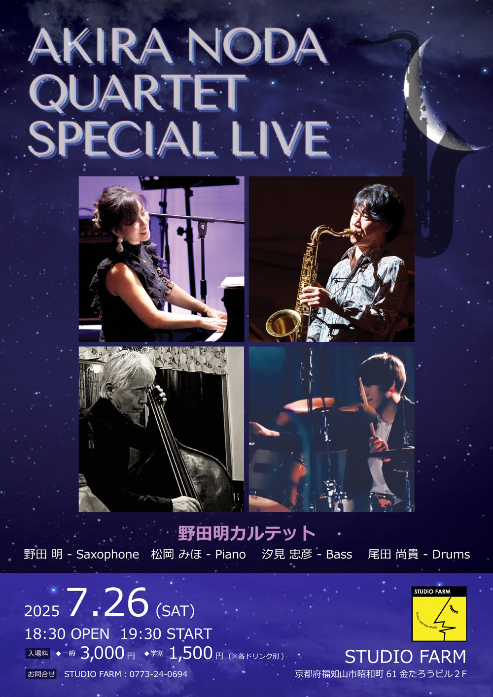 2025年7月26日(土) 19:30開演 19:00開場 STUDIO FARM 入場料3,000円 学生1,500円 税込 ■チケット取り扱い STUDIO FARM スタジオエヌ